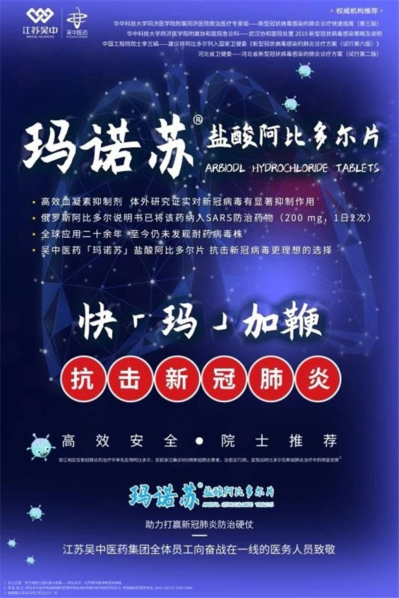 期待阿比多爾早日列入國家衛健委《新型冠狀病毒感染的肺炎診療方案(試行第六版)》,造福更多新冠病毒感染患者!