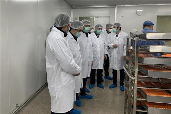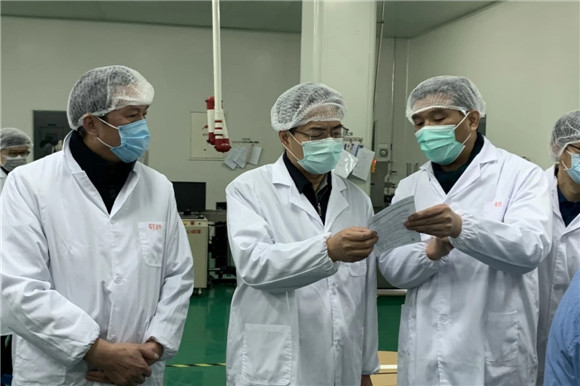 2月12日,蘇州市委副書記朱民、蘇州市委副秘書長祁立春等領導到公司調研,了解公司疫情防控相關藥品的生產情況。吳中區委書記唐曉東,吳中區委常委、開發區黨工委副書記、管委會副主任顧玉琪等領導陪同調研。