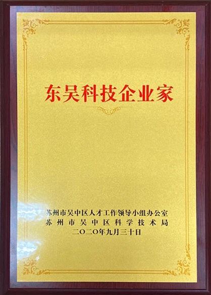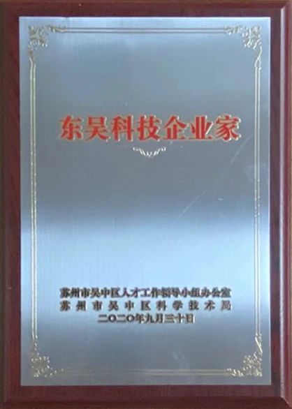 10月18日,在“智匯吳中、造優未來”——2020蘇州吳中太湖經貿合作洽談會科技局分活動暨東吳創新中心推介會上,股份公司董事長、首席執行官錢群山獲評東吳領軍科技企業家,股份公司副總裁、江蘇吳中醫藥集團有限公司總經理孫田江獲評東吳重點科技企業家,吳中區政府副區長姚東等領導分別為東吳科技企業家授牌。