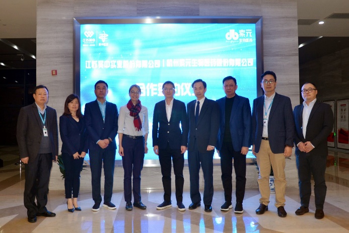 股份公司董事長、首席執行官錢群山,股份公司副董事長、醫藥集團董事長姚建林,股份公司副總裁、醫藥集團總經理孫田江;杭州索元生物醫藥股份有限公司董事長羅文,董事會秘書、首席財務官陳紀正等出席合作簽約儀式。股份公司副董事長、醫藥集團董事長姚建林與索元生物董事長羅文簽署合作協議。