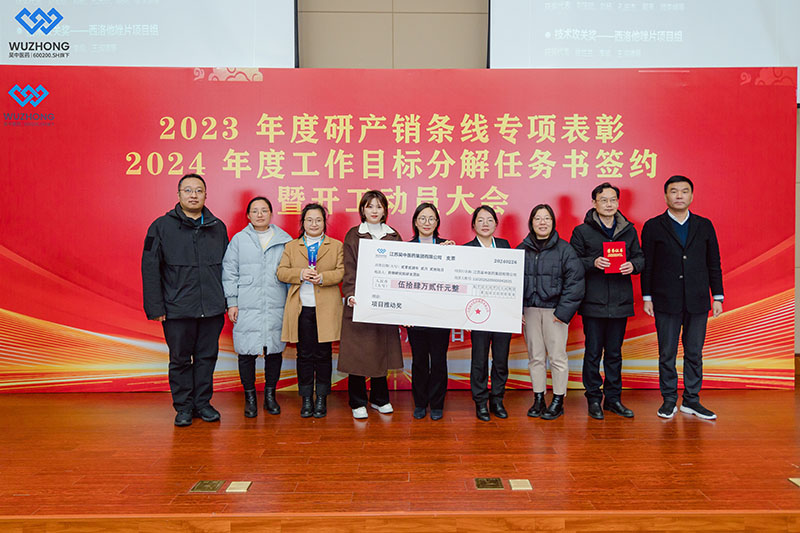 2月26日,為積極響應(yīng)股份公司“開工即開局、起步即沖刺”號(hào)召,盡快部署落實(shí)2024年度企業(yè)經(jīng)營(yíng)計(jì)劃,同時(shí)表彰2023年各條線涌現(xiàn)出的優(yōu)秀團(tuán)隊(duì)和個(gè)人,公司召開2023年度研產(chǎn)銷條線專項(xiàng)表彰、簽訂2024年度工作目標(biāo)分解任務(wù)書及開工動(dòng)員大會(huì)。股份公司總裁班子成員、醫(yī)藥集團(tuán)高級(jí)職員、各部門負(fù)責(zé)人、獲獎(jiǎng)代表等通過線上、線下形式參加了本次會(huì)議。