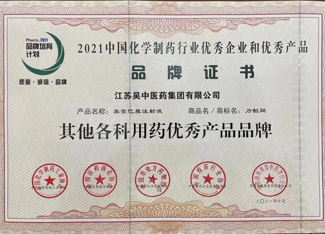 10月13日,中國化學(xué)制藥行業(yè)品牌峰會上,發(fā)布了“2021化學(xué)制藥行業(yè)品牌培育計劃”的“優(yōu)秀企業(yè)和優(yōu)秀產(chǎn)品品牌”系列榜單,吳中醫(yī)藥產(chǎn)品力制同?美索巴莫注射液獲得“其他各科用藥優(yōu)秀產(chǎn)品品牌”...